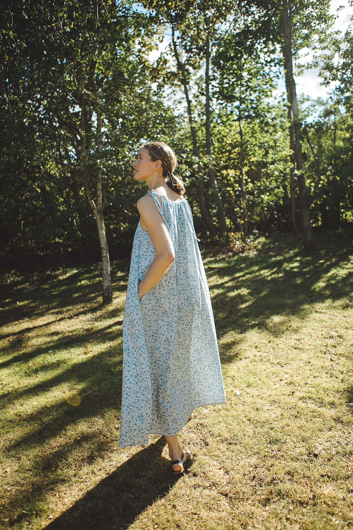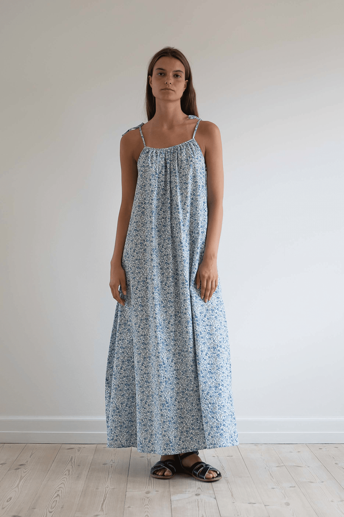 Loose strap dress in 100% organic cotton.