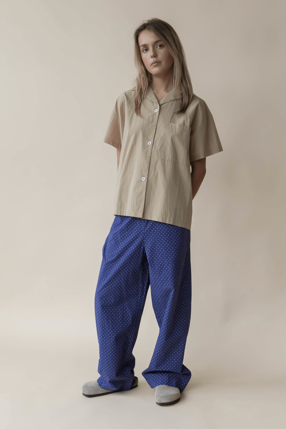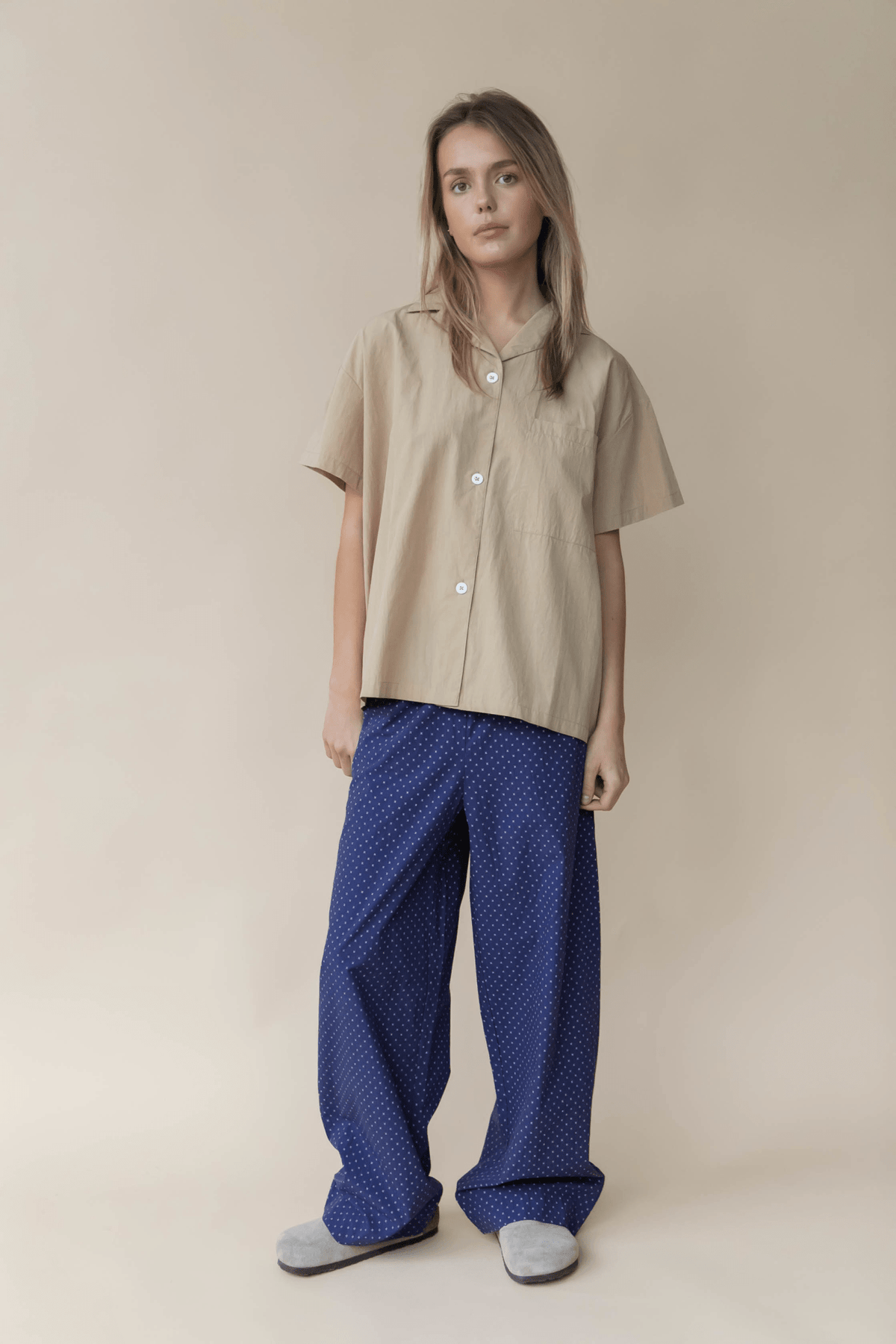 Beautiful, wide trousers in a light, organic cotton poplin. The trousers have wide legs, a loose silhouette, elastic band at the waist and two side pockets at the front. All interior stitching is French seamed to get a delicate and luxurious finish. Bella pants can be styled with a knit, a Freya t-shirt or the sleeveless Sloane t-shirt for a relaxed look, or one of our fine shirts - either in the same color or a contrasting color - if you want a slightly more formal, but still casual look.
