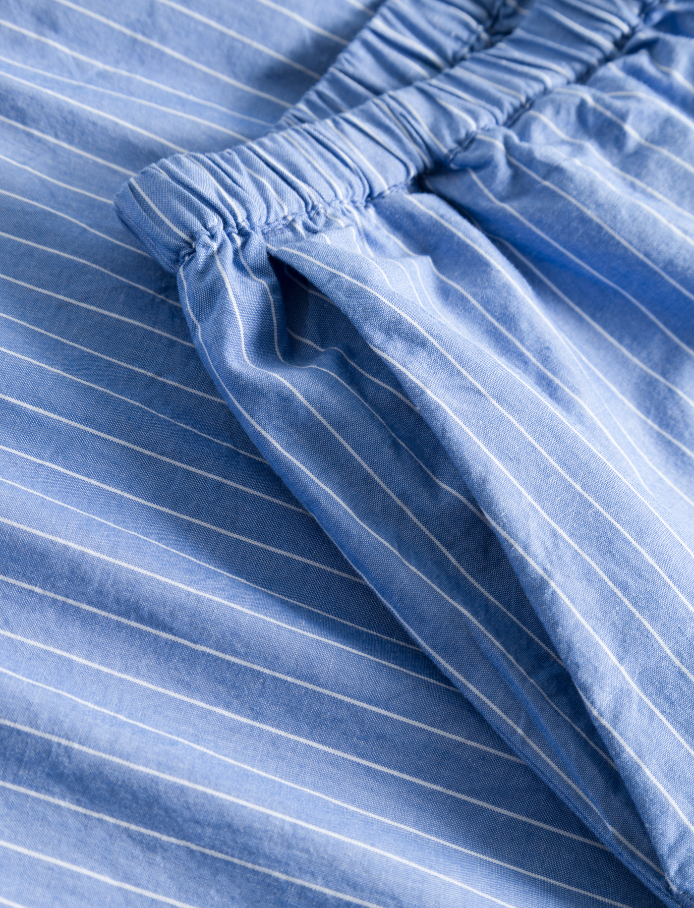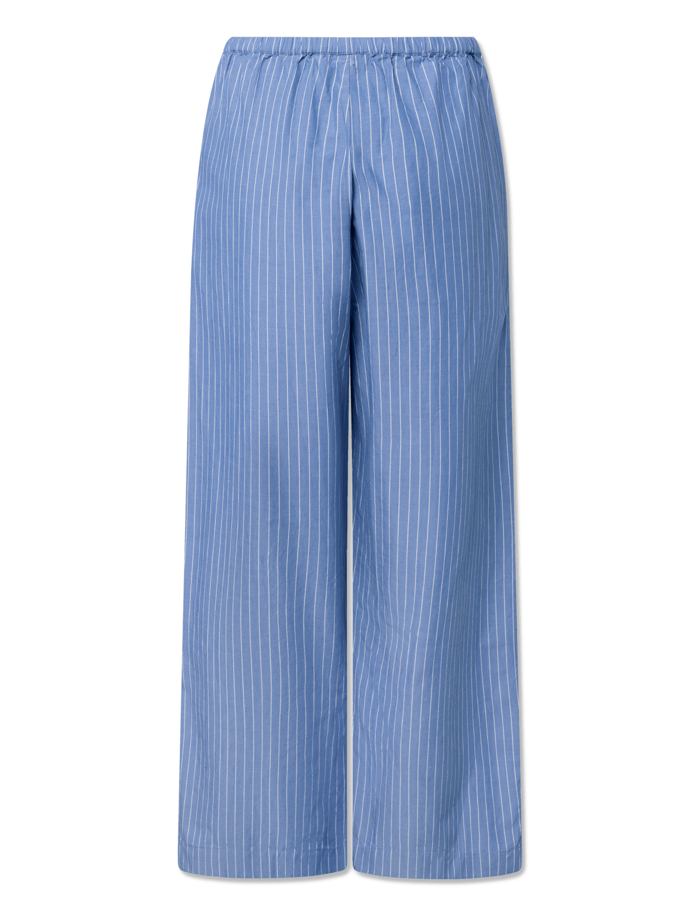 Beautiful, wide trousers in a light, organic cotton poplin. The trousers have wide legs, a loose silhouette, elastic band at the waist and two side pockets at the front. All interior stitching is French seamed to get a delicate and luxurious finish. Bella pants can be styled with a knit, a Freya t-shirt or the sleeveless Sloane t-shirt for a relaxed look, or one of our fine shirts - either in the same color or a contrasting color - if you want a slightly more formal, but still casual look.