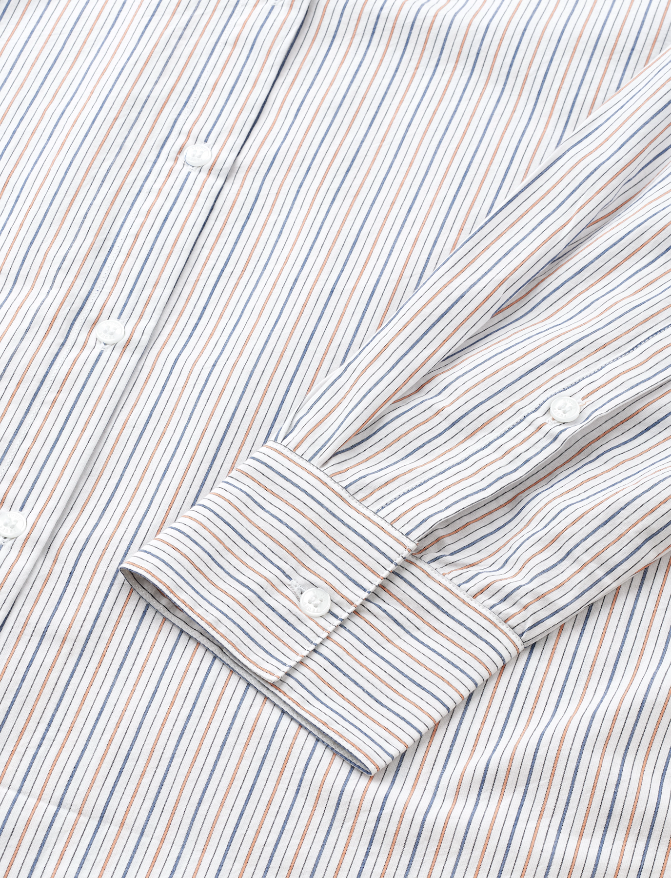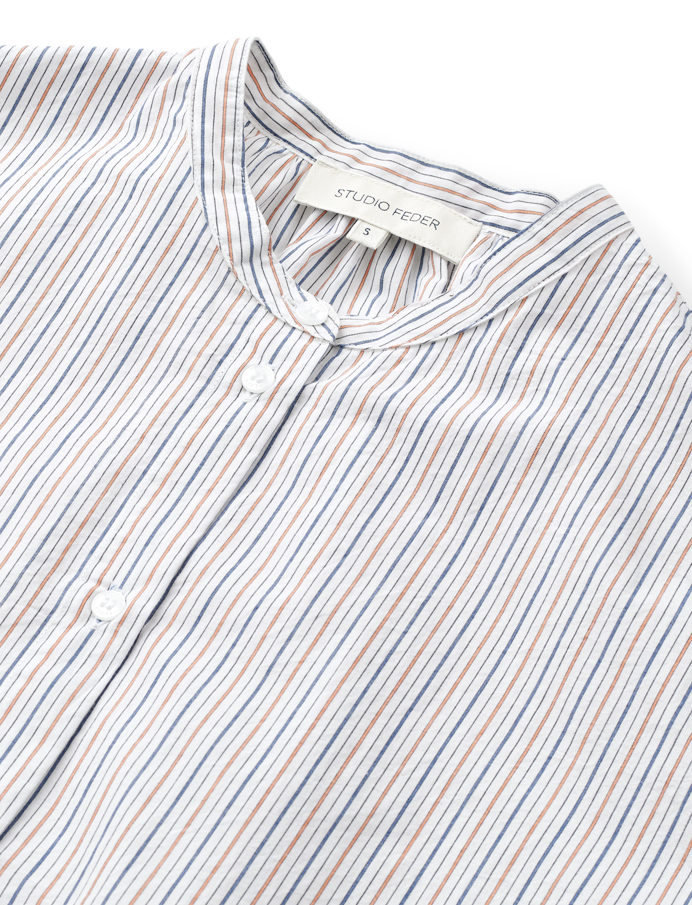 A lightweight shirt in GOTS-certified organic cotton. The shirt is with a grandad collar and small buttons at front and on sleeve cuffs. A loose fit on the body adds a feminine look to it. Use it with shorts, skirts an pants through the entire season.