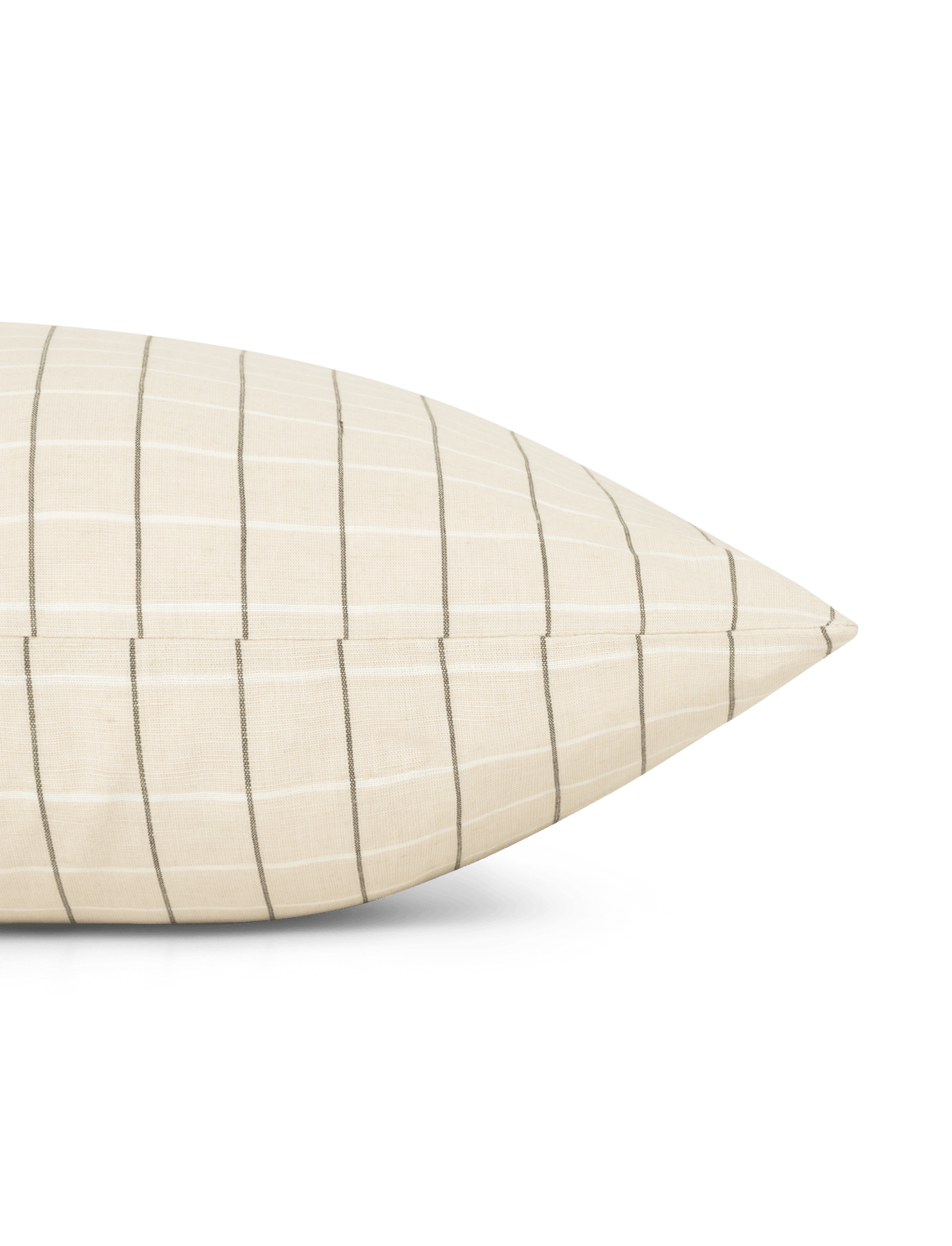 The cushion cover has a hidden zip and comes with a delicate, feather-filled OEKO-TEX inner pillow.The fabric is yarn-dyed, which means that the fabric is woven from yarn that is dyed prior to weaving.