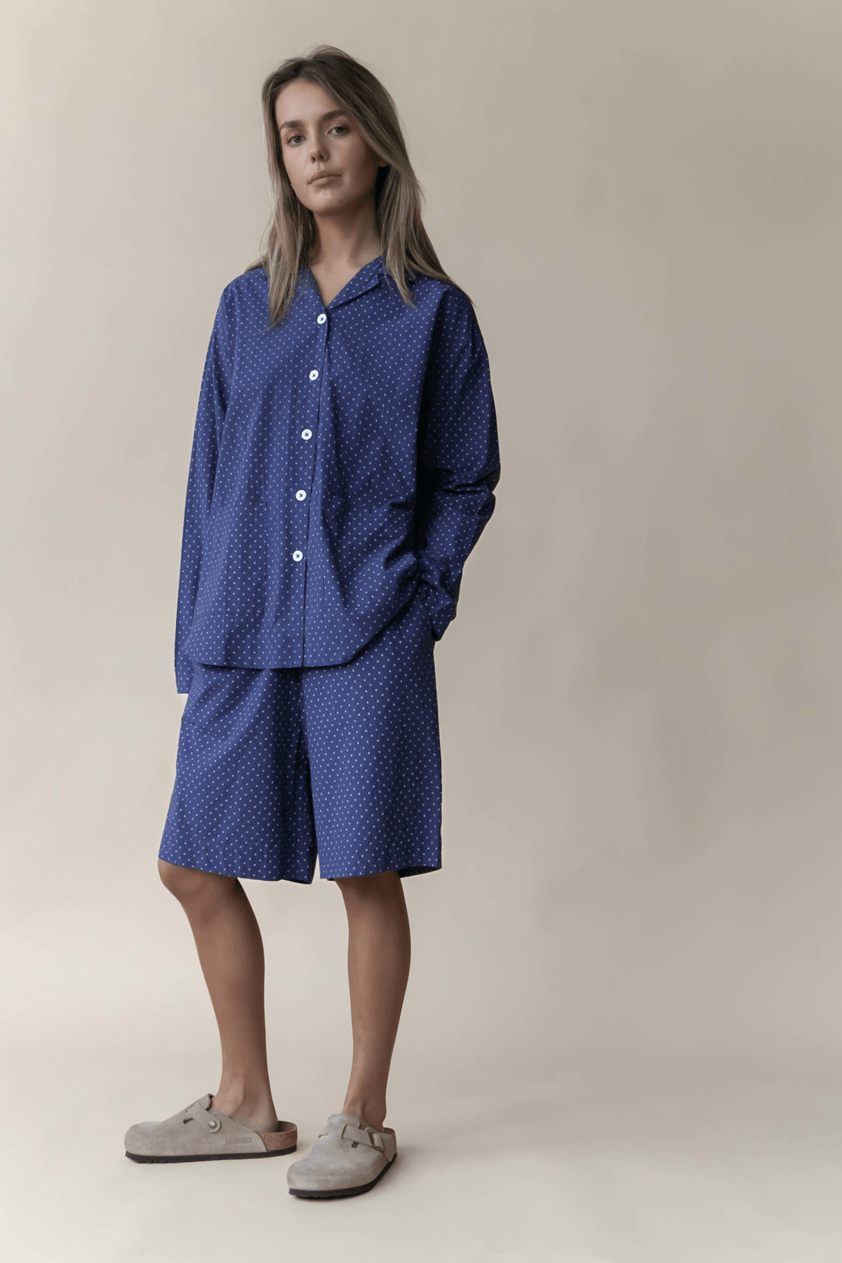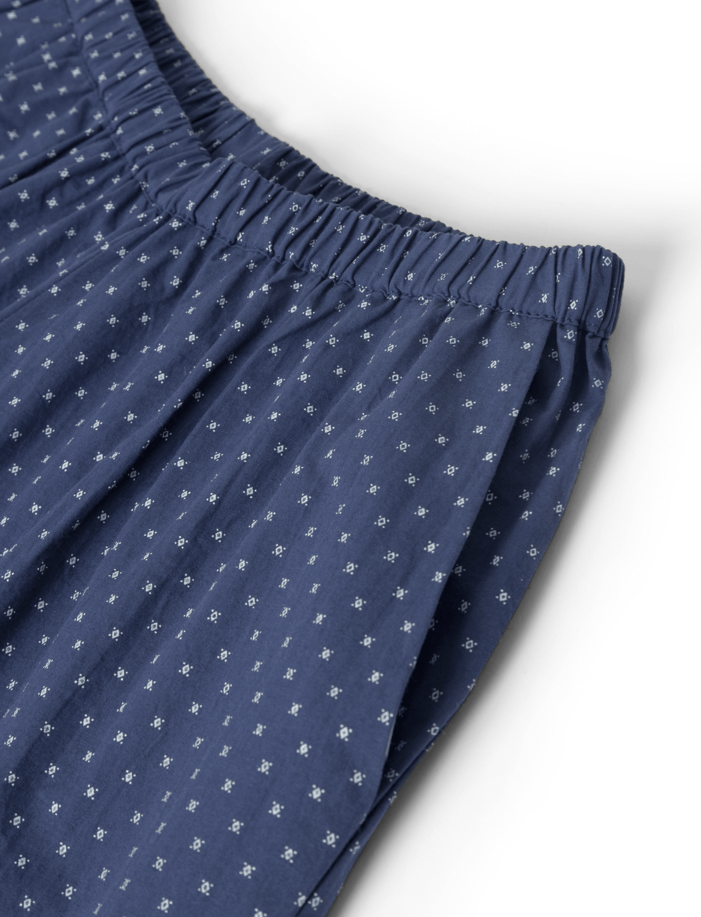 Nice shorts in a light, organic cotton poplin. The shorts have a loose silhouette, narrow elastic band at the waist and two practical side pockets. All interior stitching is French seamed to get a delicate and luxurious finish.Norah shorts are slightly longer and more classic in expression than our Jasmin shorts. Match them with a shirt or t-shirt, and get a nice summery set that can be used both on the beach and in the city