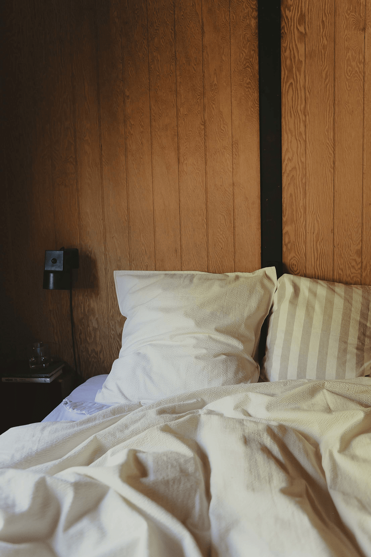 Organic bedding in washed cotton seersucker for a very beautiful understated look and handfeel.