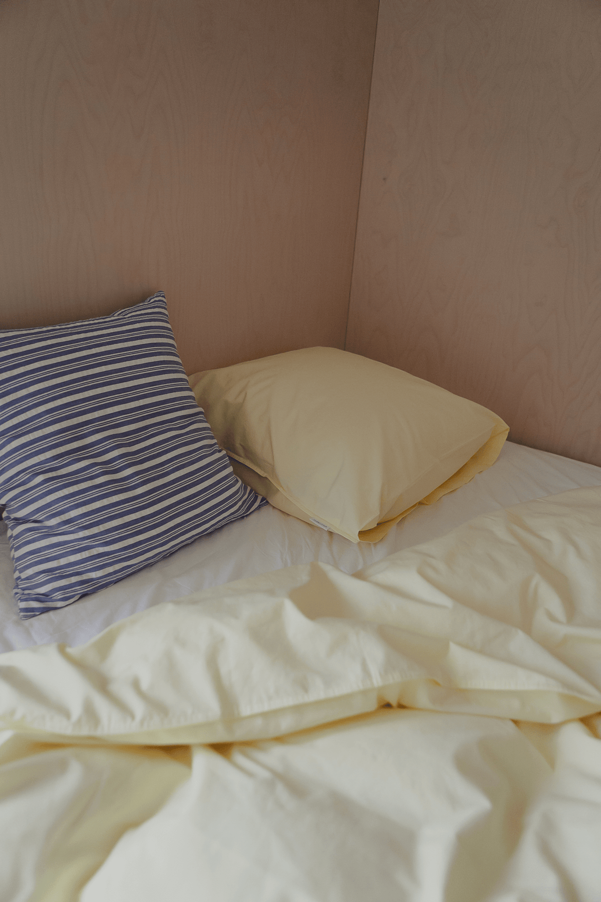 Organic bedding in washed cotton percale for a very beautiful understated look and handfeel.