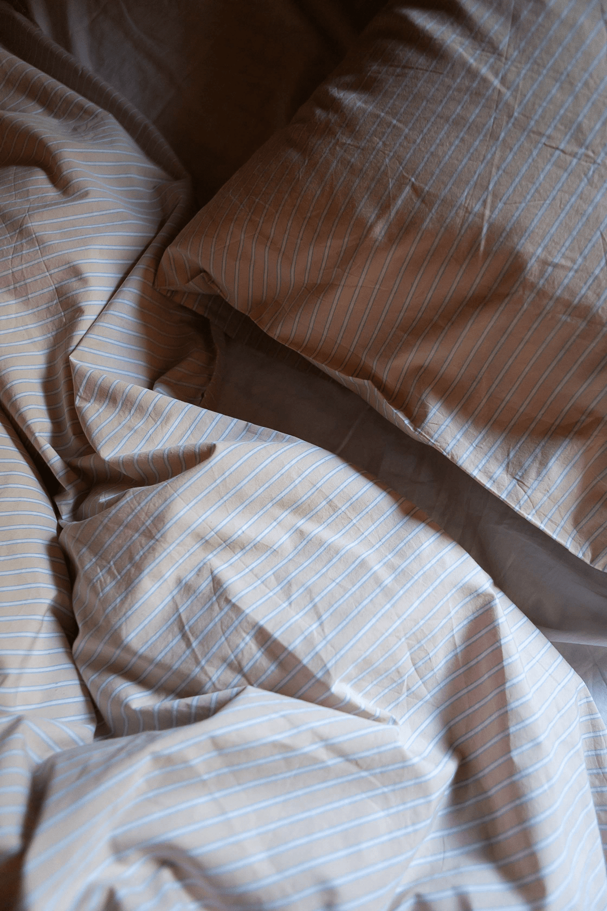 Organic bedding in washed cotton percale for a very beautiful understated look and handfeel.