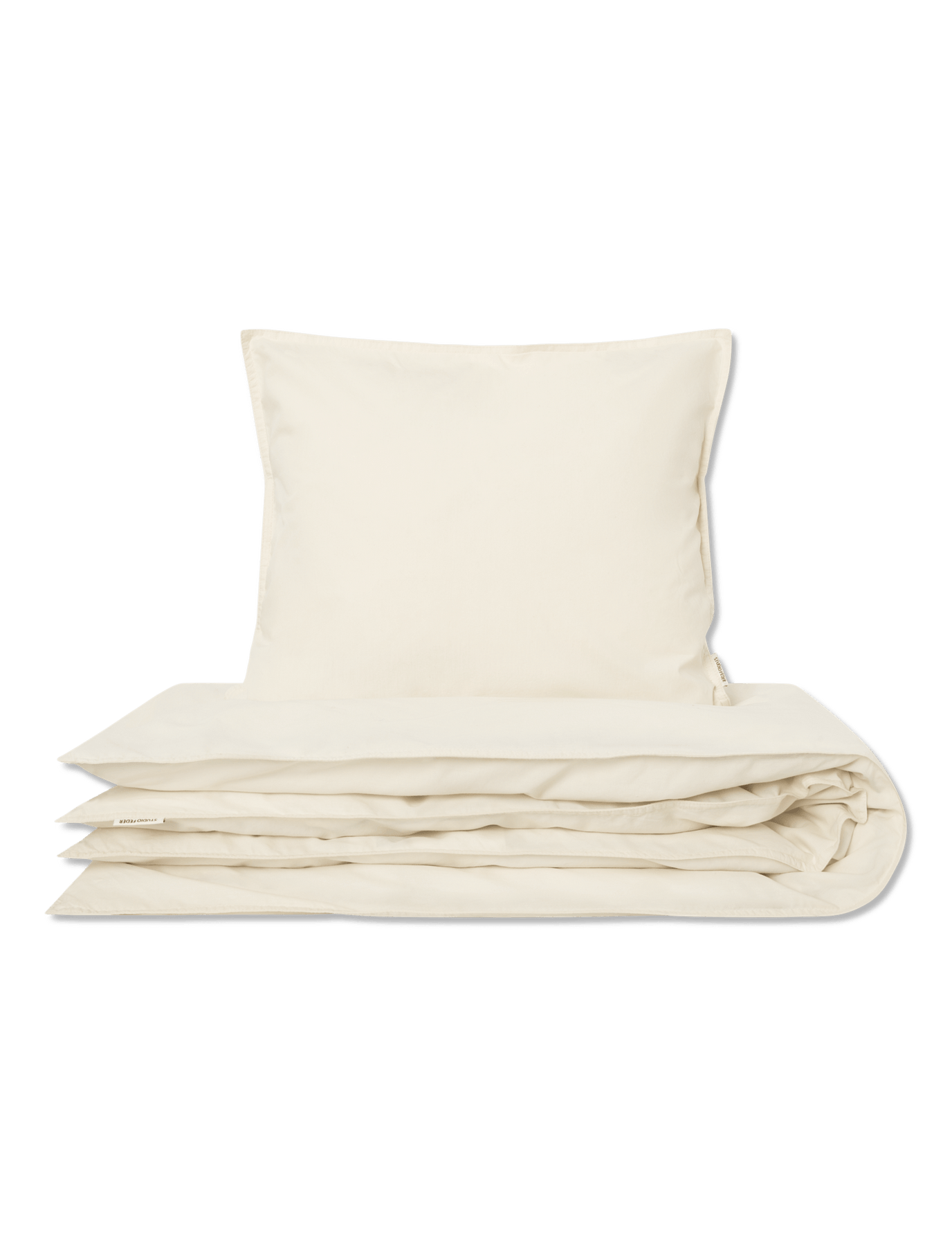 GOTS certified organic bedding in washed cotton percale for a very beautiful understated look and handfeel. Pillow case in 50x60 cm with envelope closure and duvet cover in 150x210 cm with button closure. The bedding is delivered in a matching fabric bag with tie strings and French seams inside.