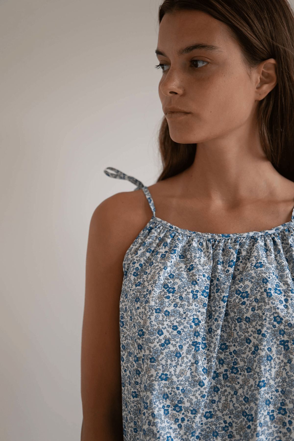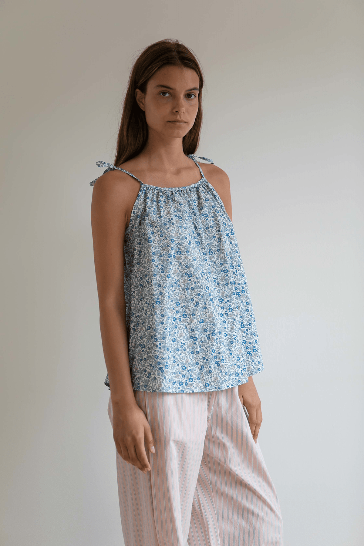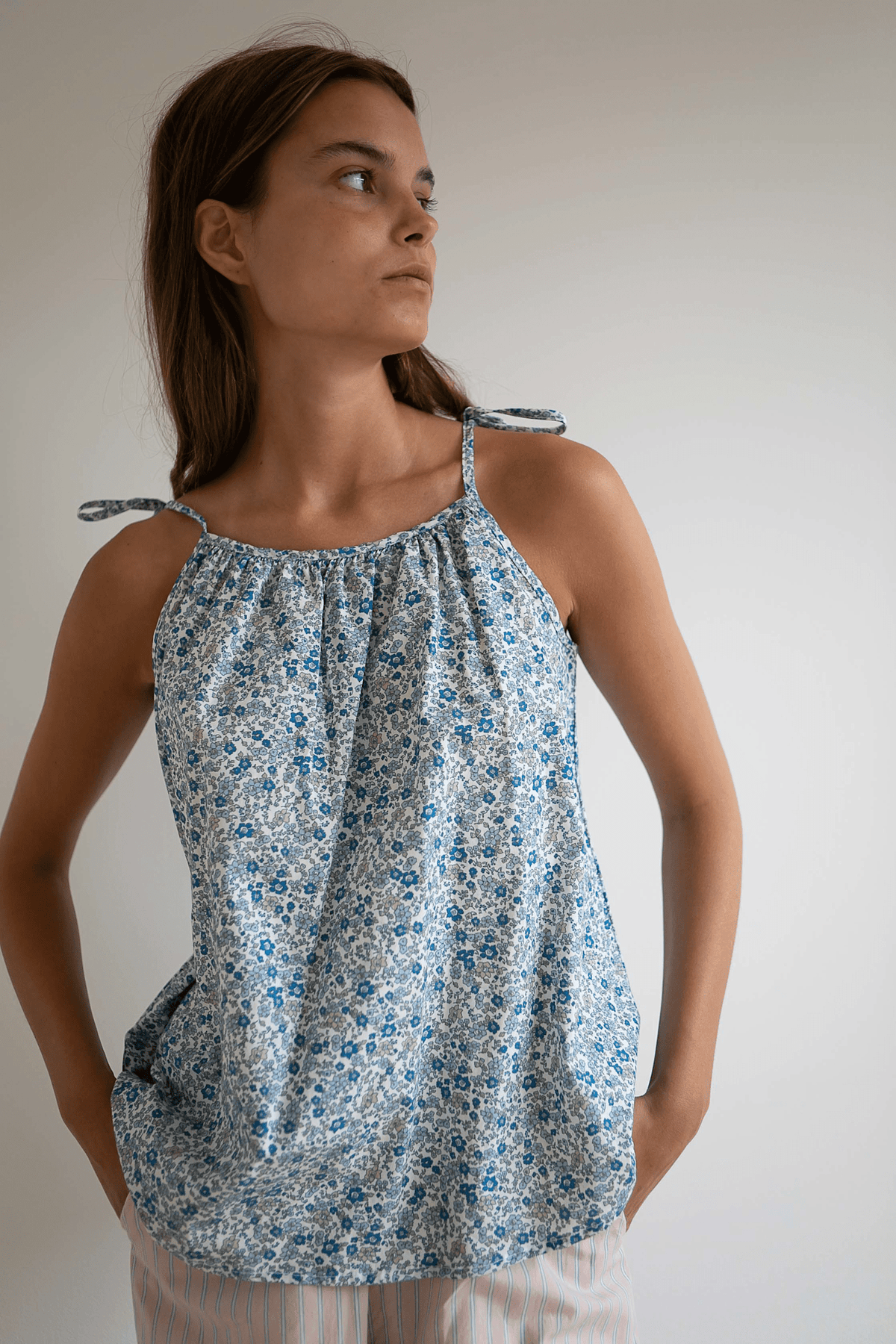 Loose strap top in 100% organic cotton.