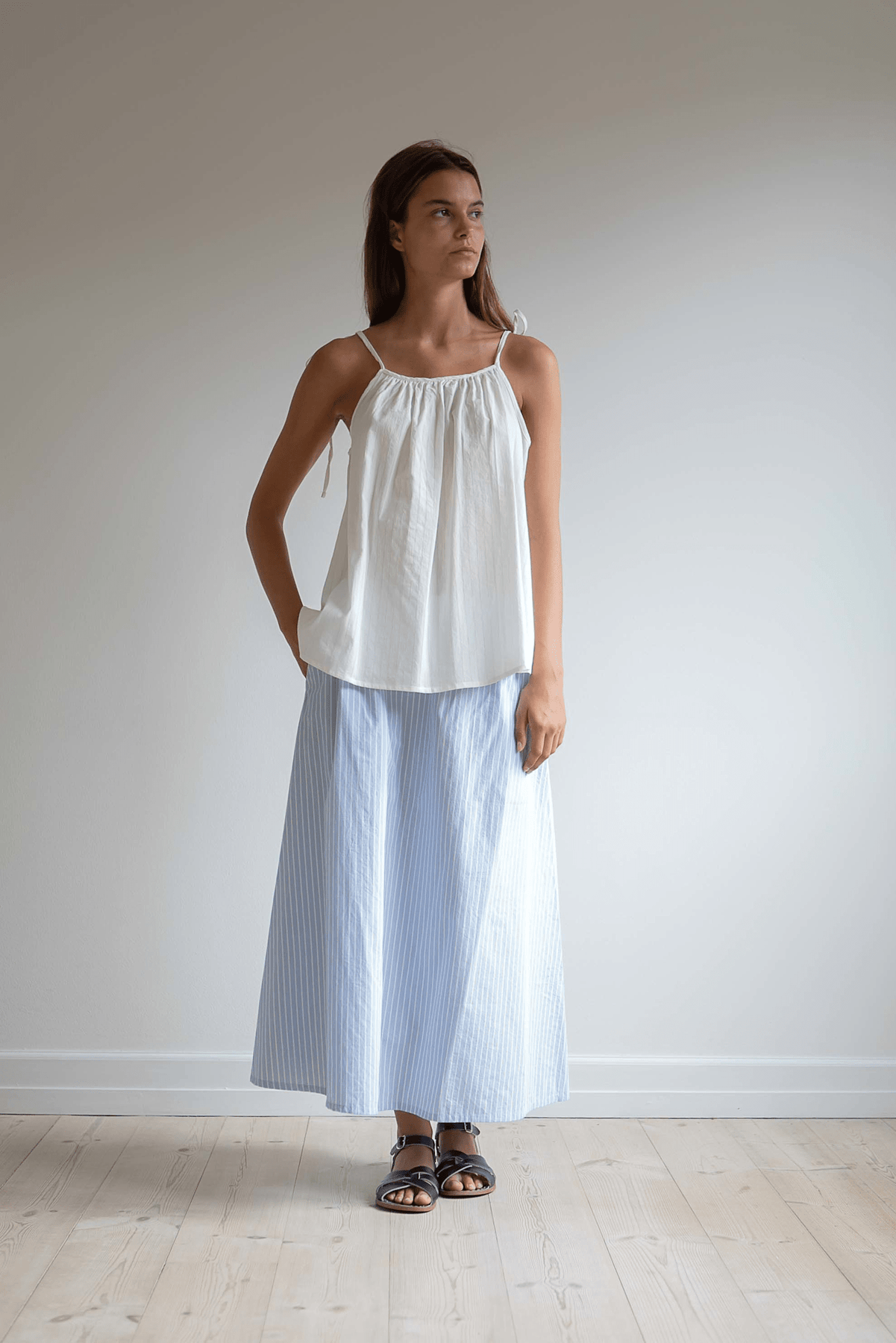 Loose strap top in 100% organic cotton.