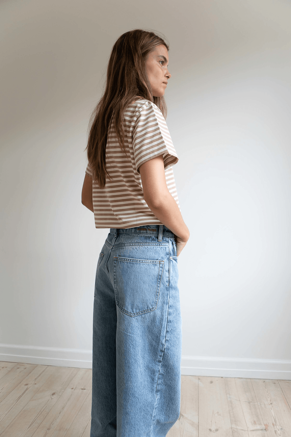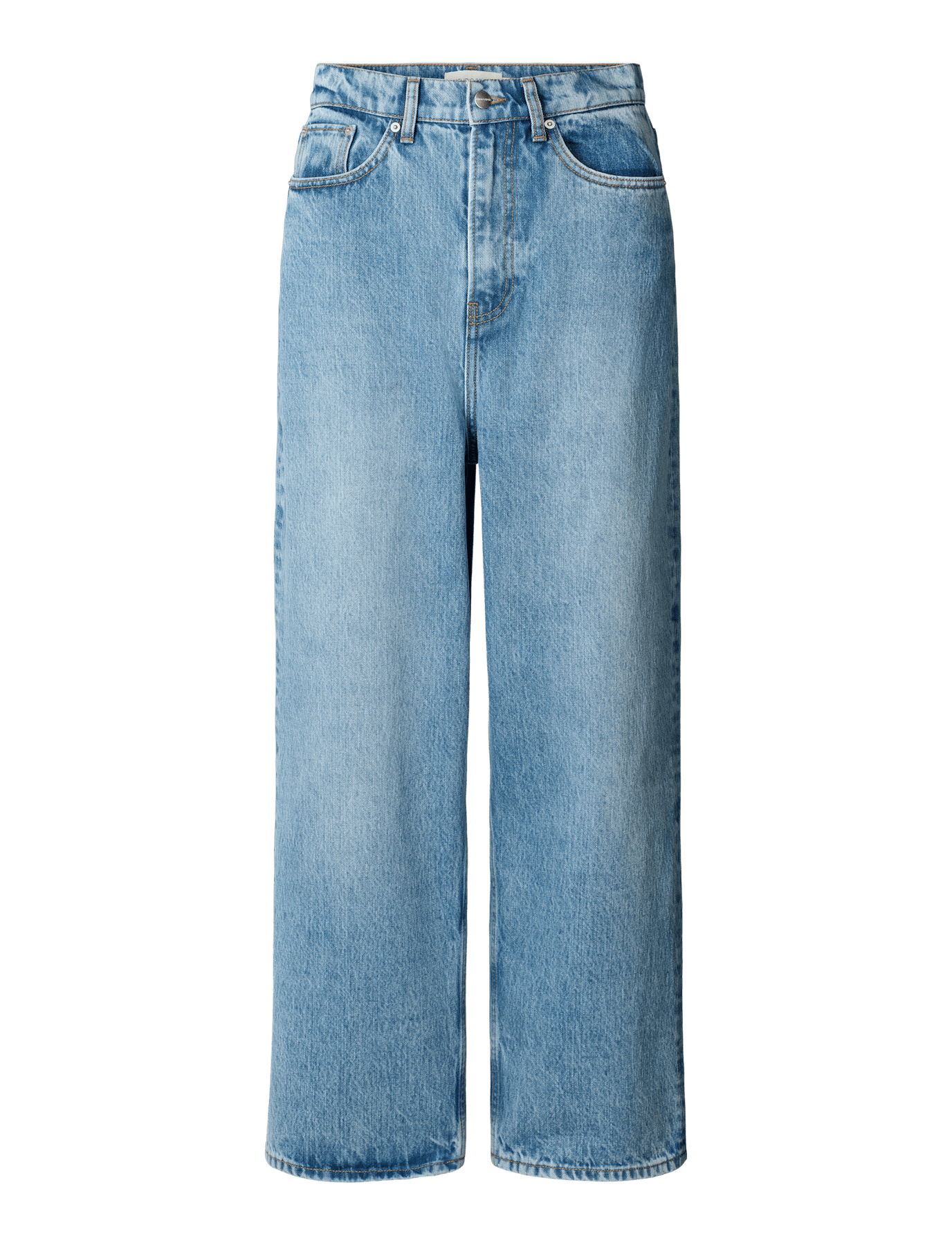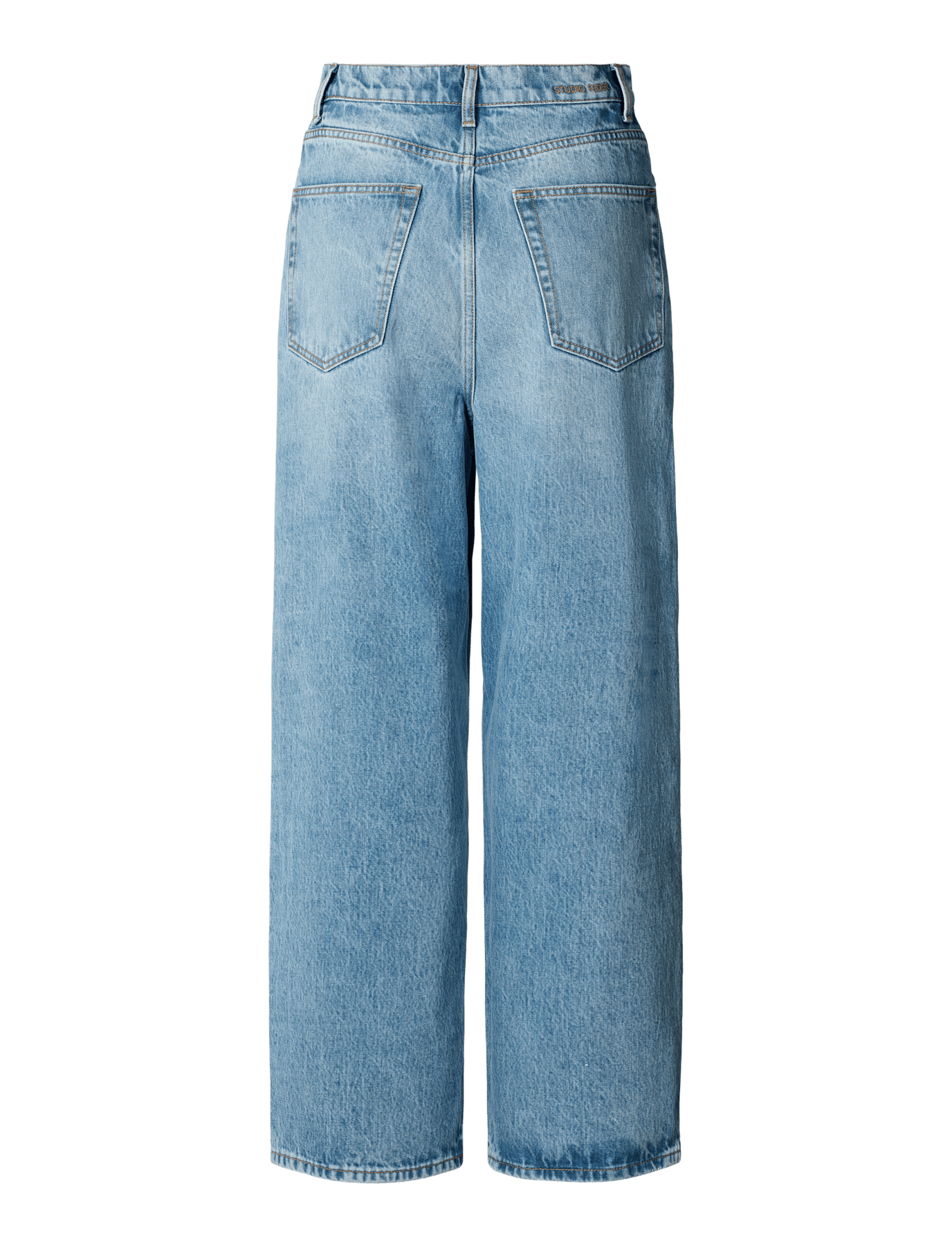 Evelyn jeans har et afslappet, oversize fit med brede ben og et ubesværet udtryk. Klassiske detaljer som forlommer, baglommer og bæltestropper giver et tidløst design med et moderne twist. Fremstillet i GOTS-certificeret, 100% økologisk bomuld og produceret i Tyrkiet i høj kvalitet. Denim er en helt ny kategori i sortimentet, introduceret med fokus på kvalitet, pasform og tidløst design.