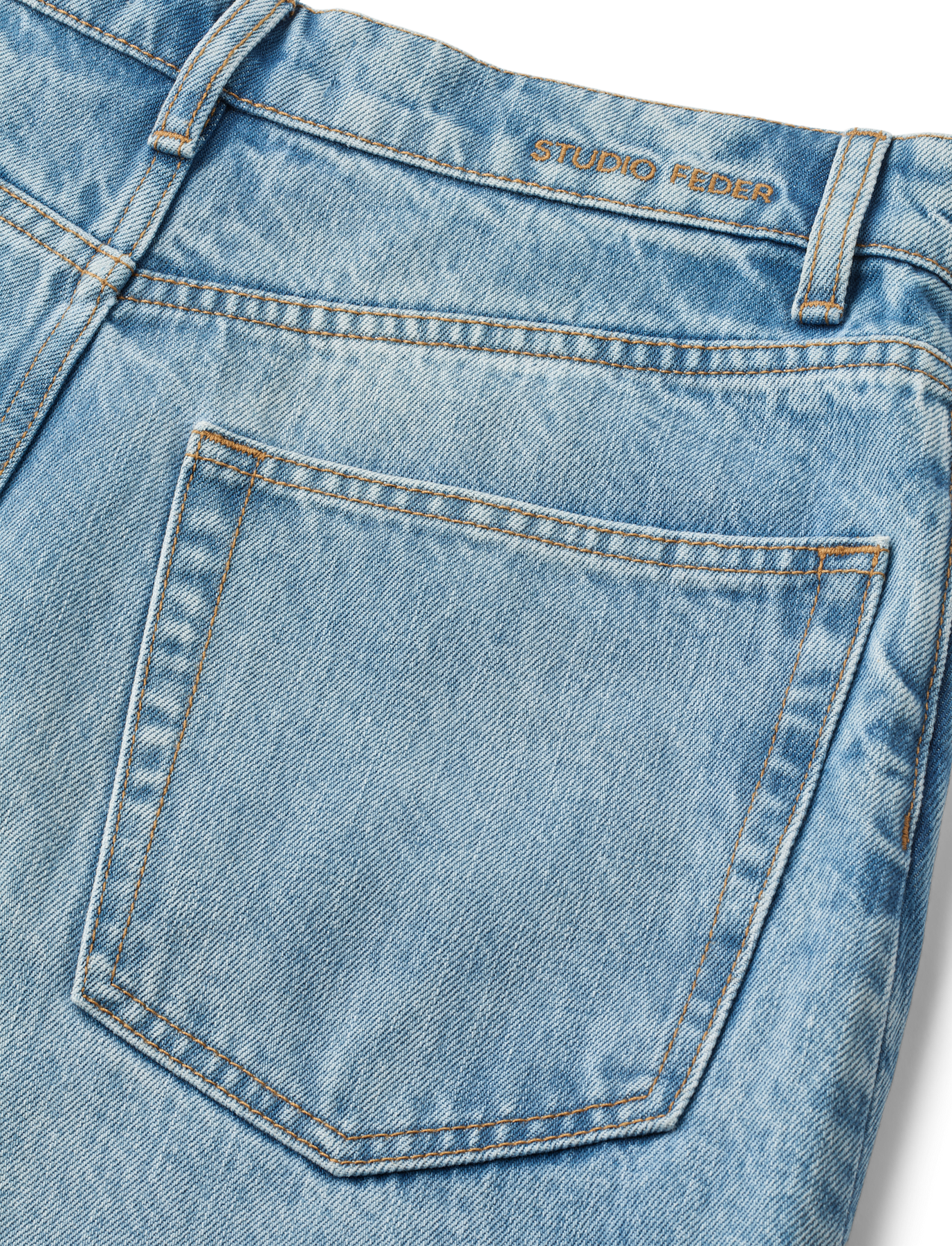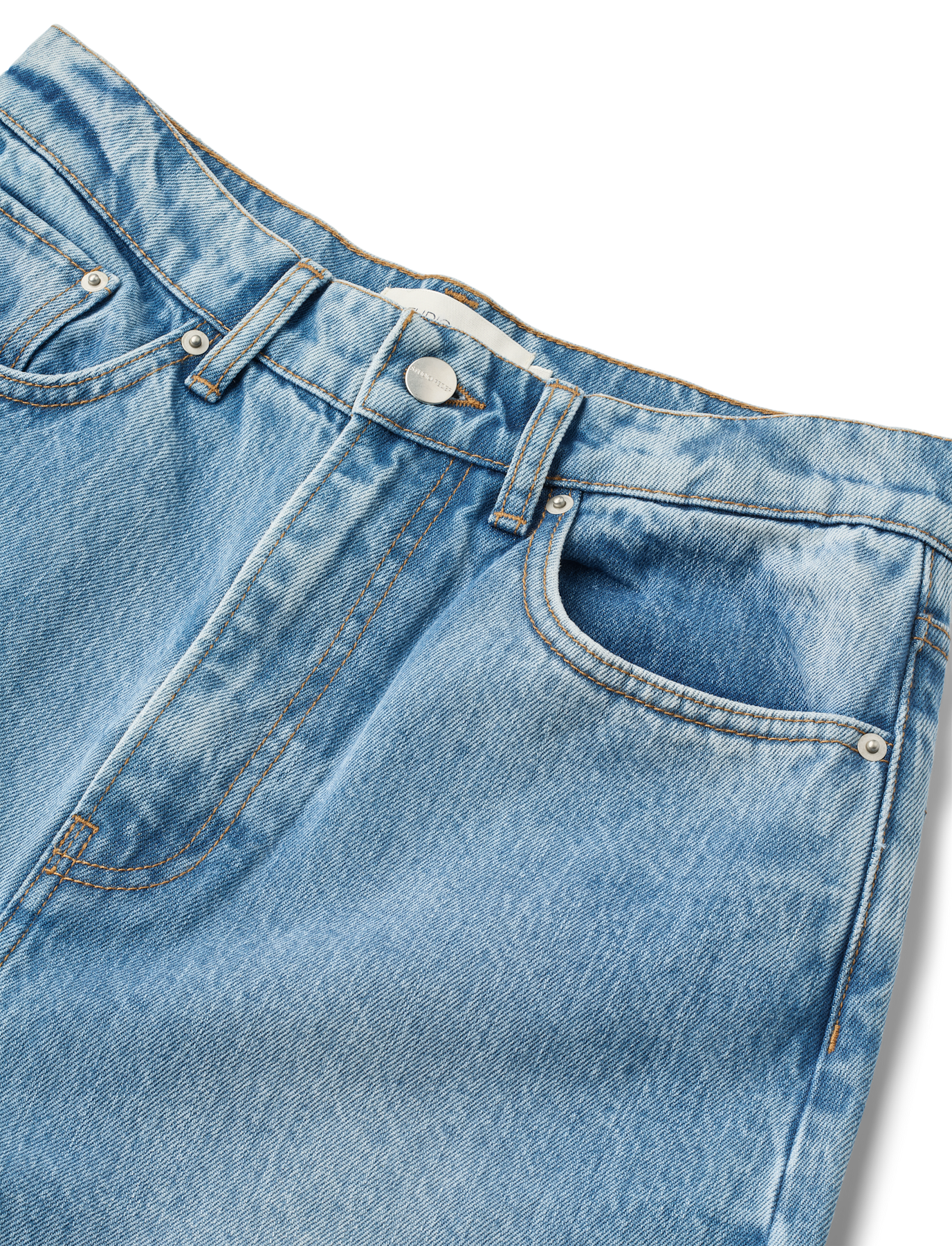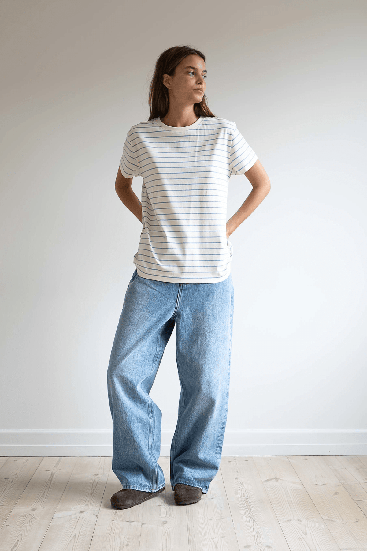 Evelyn jeans har et afslappet, oversize fit med brede ben og et ubesværet udtryk. Klassiske detaljer som forlommer, baglommer og bæltestropper giver et tidløst design med et moderne twist. Fremstillet i GOTS-certificeret, 100% økologisk bomuld og produceret i Tyrkiet i høj kvalitet. Denim er en helt ny kategori i sortimentet, introduceret med fokus på kvalitet, pasform og tidløst design.