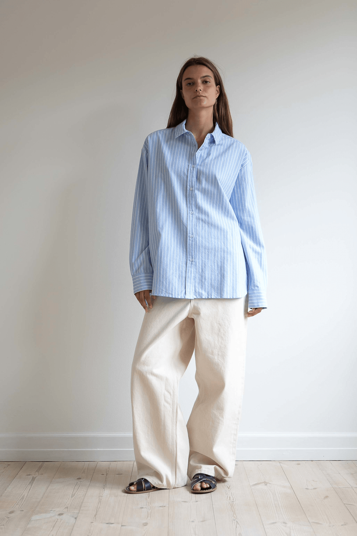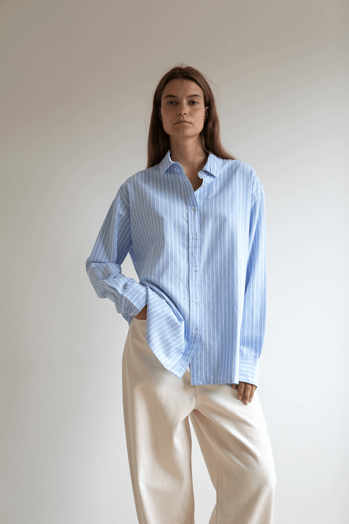 Josie skjorten er lavet i en klassisk Oxford-kvalitet, en lidt kraftigere kvalitet end poplin, med en blød og struktureret overflade. En tidløs skjorte med et afslappet udtryk og fine skrædderdetaljer. Den har krave, manchetter og knaplukning foran – et alsidigt og elegant basisstykke, der passer til både hverdag og mere formelle anledninger.