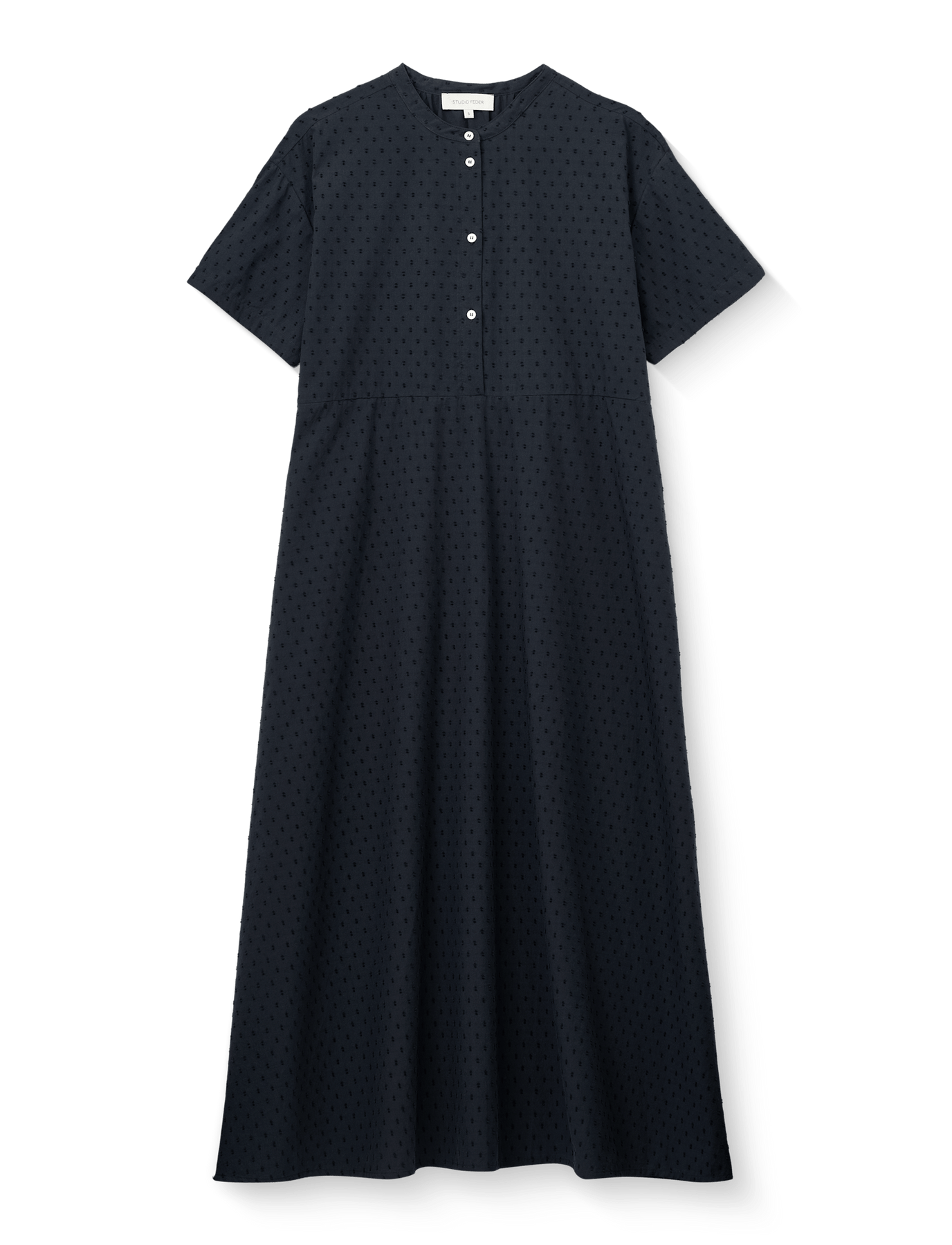 Lea kjolen er en let sommerkjole med et løst og luftigt look. Den har kinakrave, stolpe med knapper fortil og korte ærmer. En overskæring i taljen giver kjolen en smuk silhuet.
