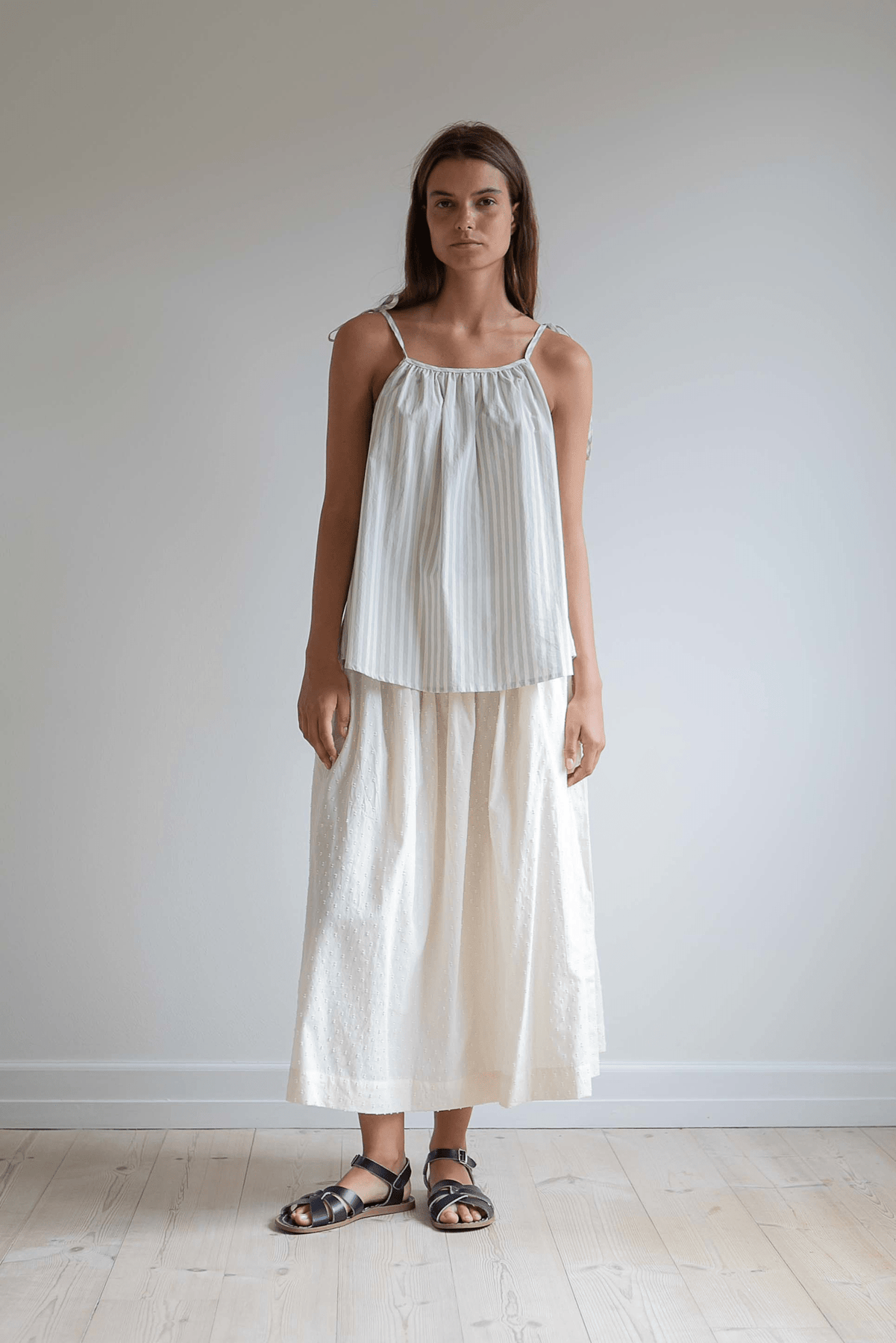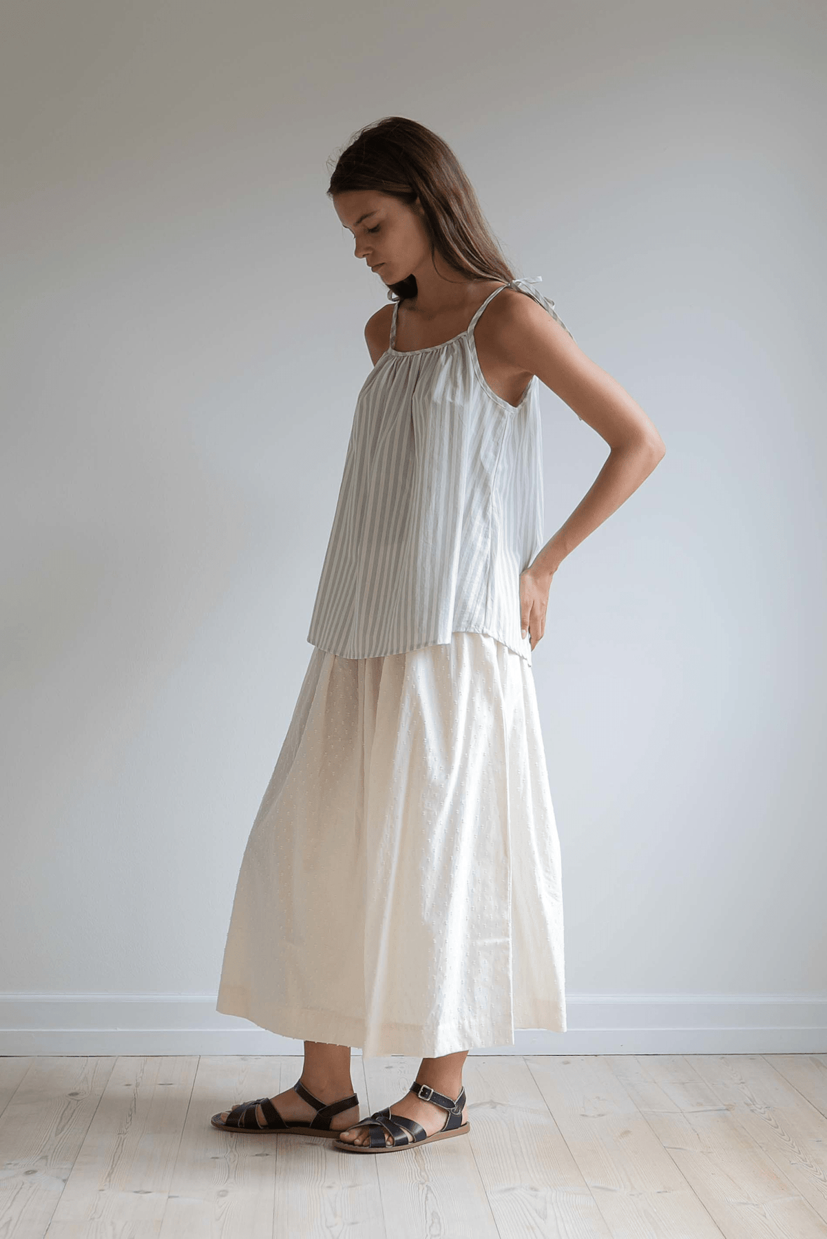 Fin, blød nederdel i økologisk bomuld. Olga skirt har elastiklinning og masser af vidde, der gør den dejlig let og luftig på varme sommerdage.