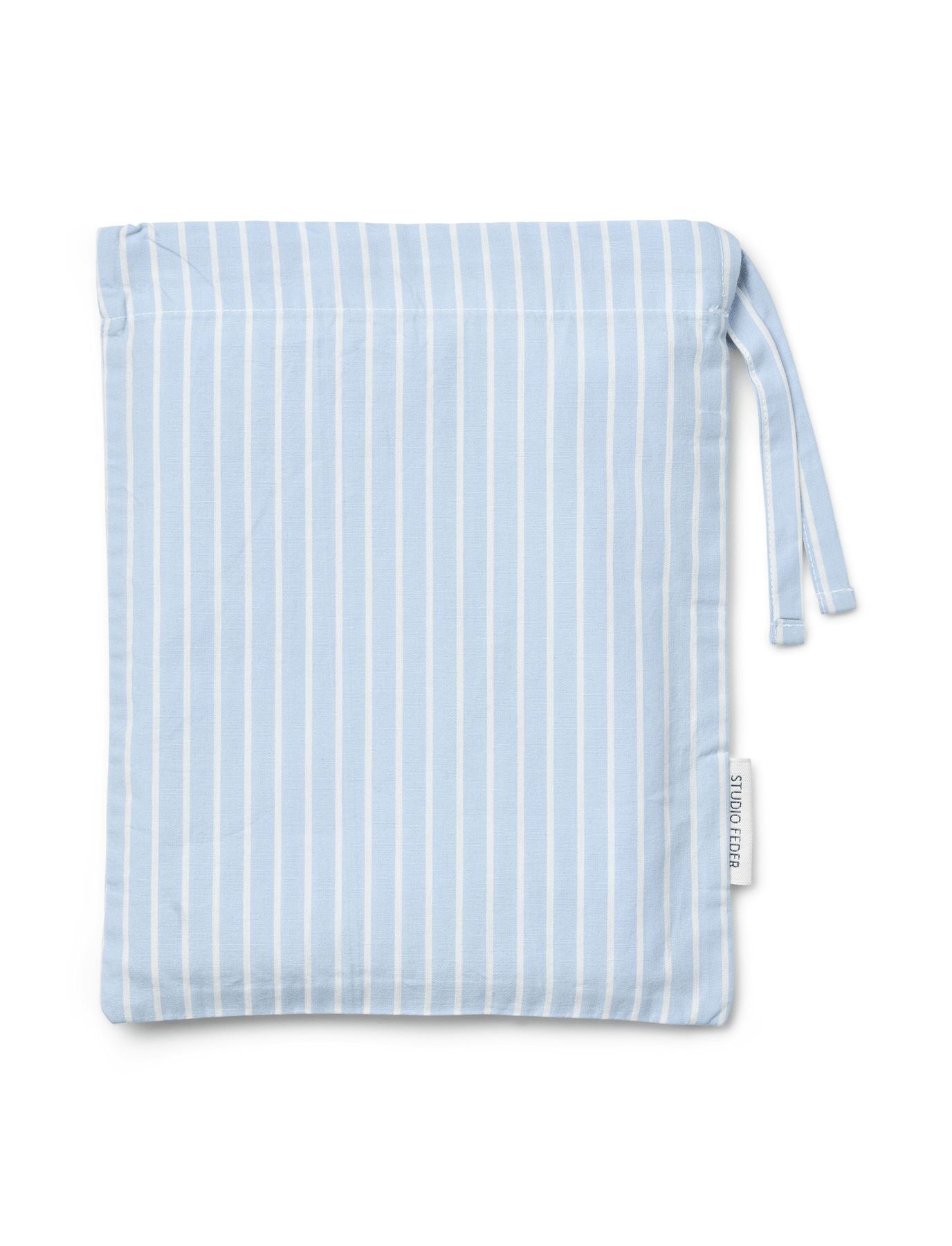 Sengetøjet leveres i en matchende stofpose, der lukkes foroven med bindebånd.